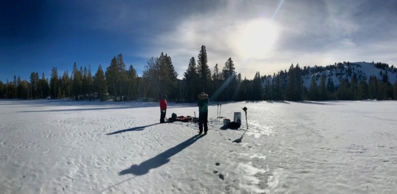 Graduate student Nic Beres conducts field research on surface reflectance of snow and ice. February 2018.