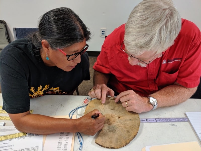 Workshop facilitators and participants counted tree rings as part of Kyle Bocinsky’s dendrochronology demonstration at NWAL’s teacher workshop. Sept 14, 2019.