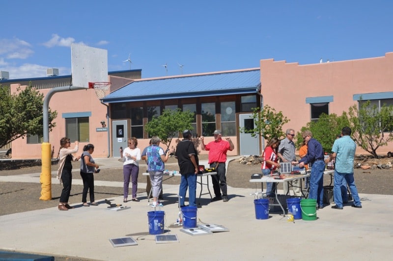 Ed Franklin, Ph.D., (UA) led a professional development seminar on solar energy, using locally-appropriate methods and hands-on examples to demonstrate how solar panels can be used to generate energy and pump water. NWAL team member Alex Lutz, Ph.D., (DRI) led the group through a lesson in water quality, with a focus on salinity and total dissolved solids, using maps of water contamination from the Hopi and Navajo reservations and a hands-on exercise with salinity-meters. NWAL team member Kyle Bocinsky, Ph.D., (DRI/Crow Canyon Archaeological Center) led a seminar on climate and weather patterns, comparing modern-day climate conditions with paleo data from the last 1000 years, through an examination of the local tree ring record.
