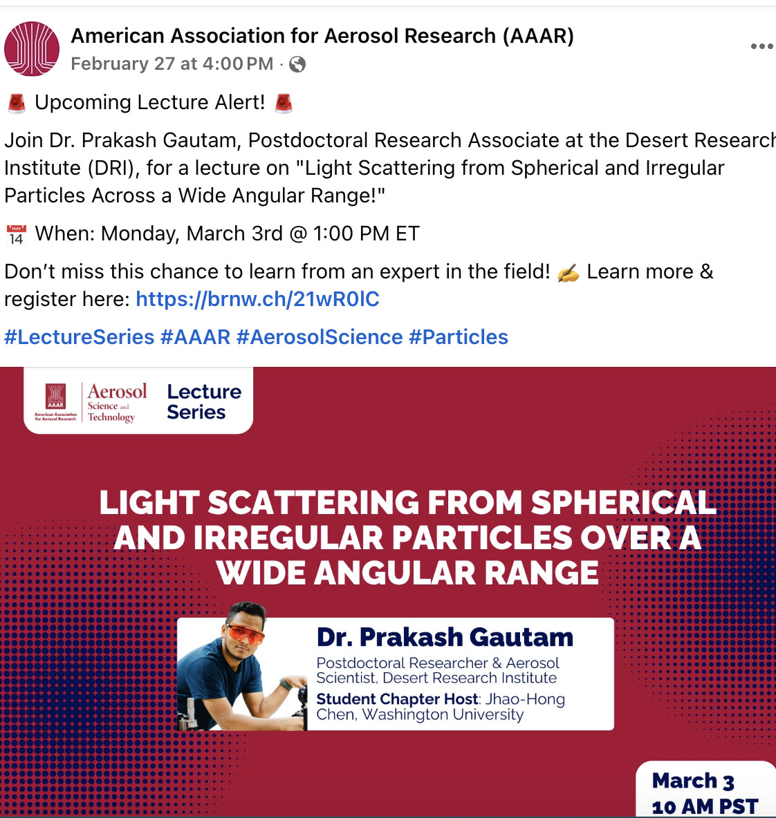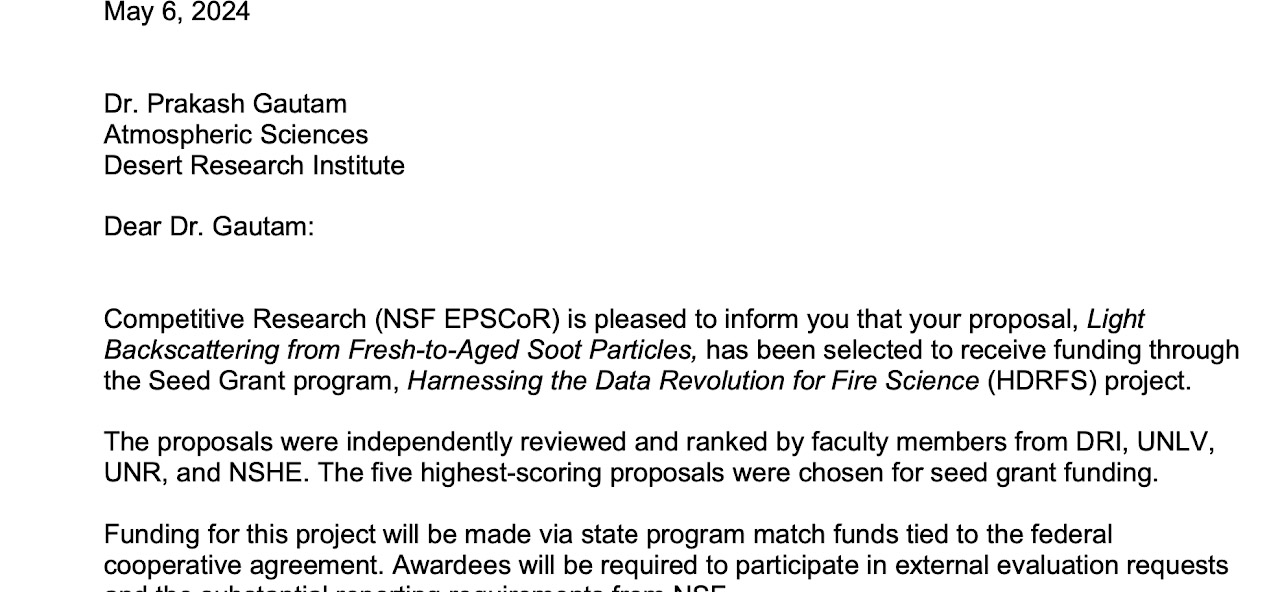 Gautam Laboratory for Advanced Aerosol Dynamicsand Light Scattering Research Biographical Group Research Publications Grants & Fundings Opportunity Miscellaneous Home Northern Nevada Science Center | 2215 Raggio Parkway, Reno, NV 89512 785.317.7470 Prakash.Gautam@dri.edu MISCELLANEOUS