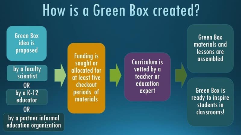 Green Boxes are for any PreK-12 educator within Nevada, including those affiliated with informal education groups or homeschool organizations. During the academic year, priority will be given to schools within a Nevada school district (i.e WCSD, CCSD, etc.). Please note that we are unable to accommodate any Green Box request that will serve less than ten students.